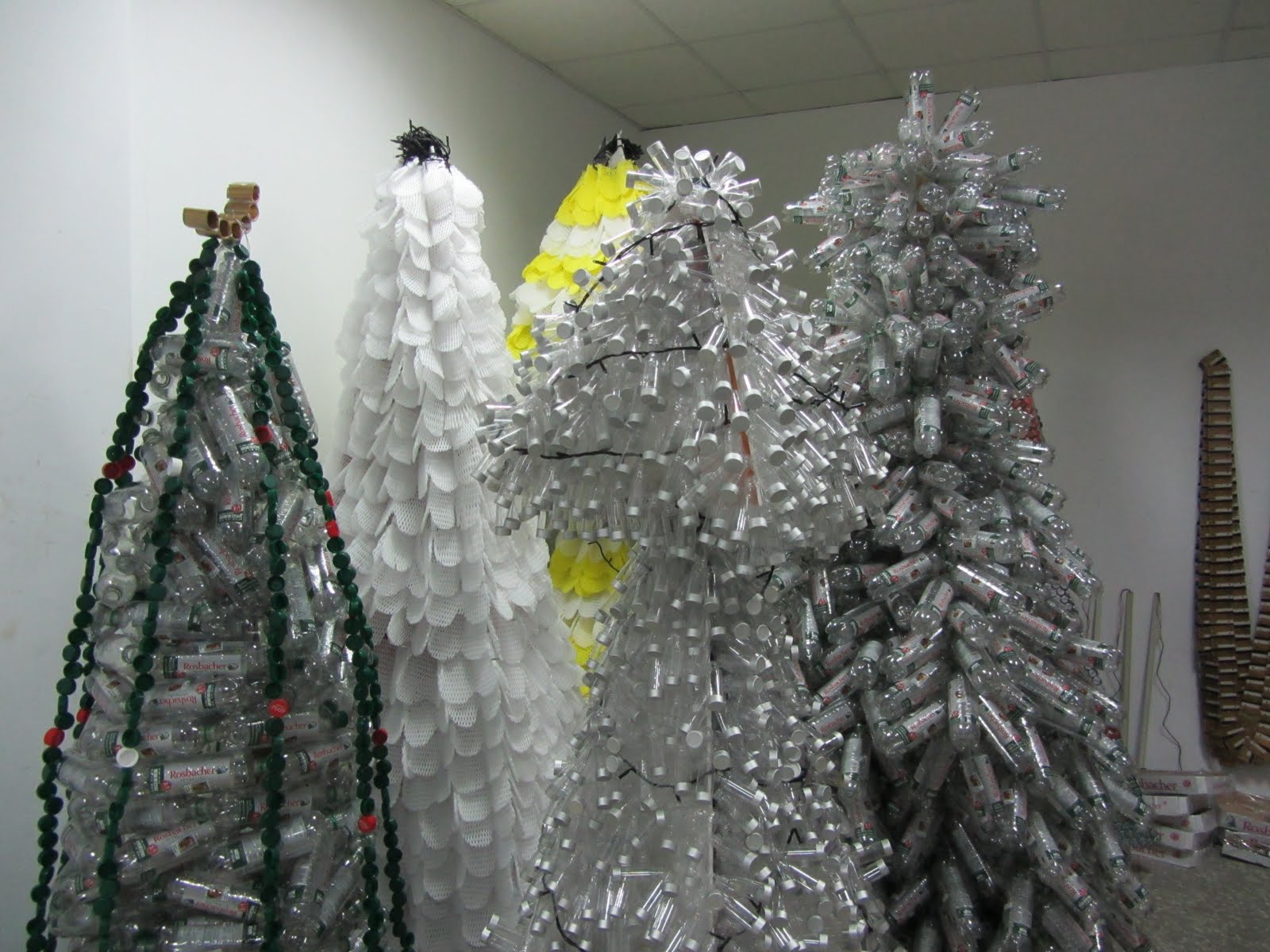 這次台北聖誕城,展出的25顆環保聖誕樹群中,有幾顆聖誕樹相當特別,利用德國雷巴哈氣泡礦泉水空瓶來製作,把過期的德國雷巴哈氣泡水的空瓶拿來當作聖誕樹的樹葉,加上黃色燈泡,就成了環保聖誕樹,不僅結合環保藝術,寶特瓶重獲新生,點亮台北聖誕城。